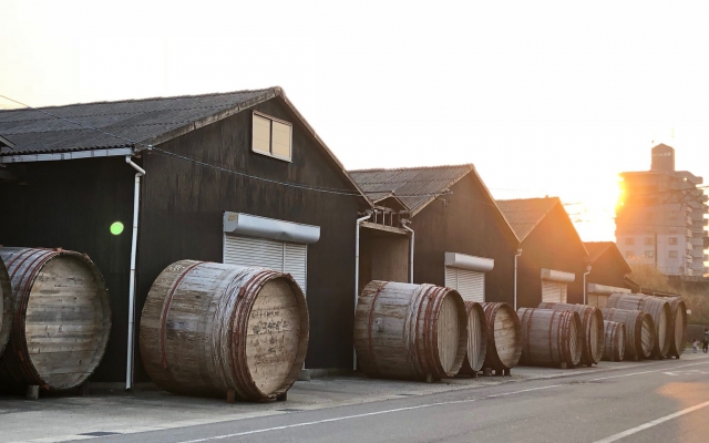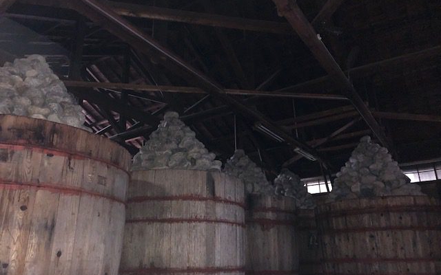 使っていない大きな樽が道沿いに並んでいるのも珍しい光景です
