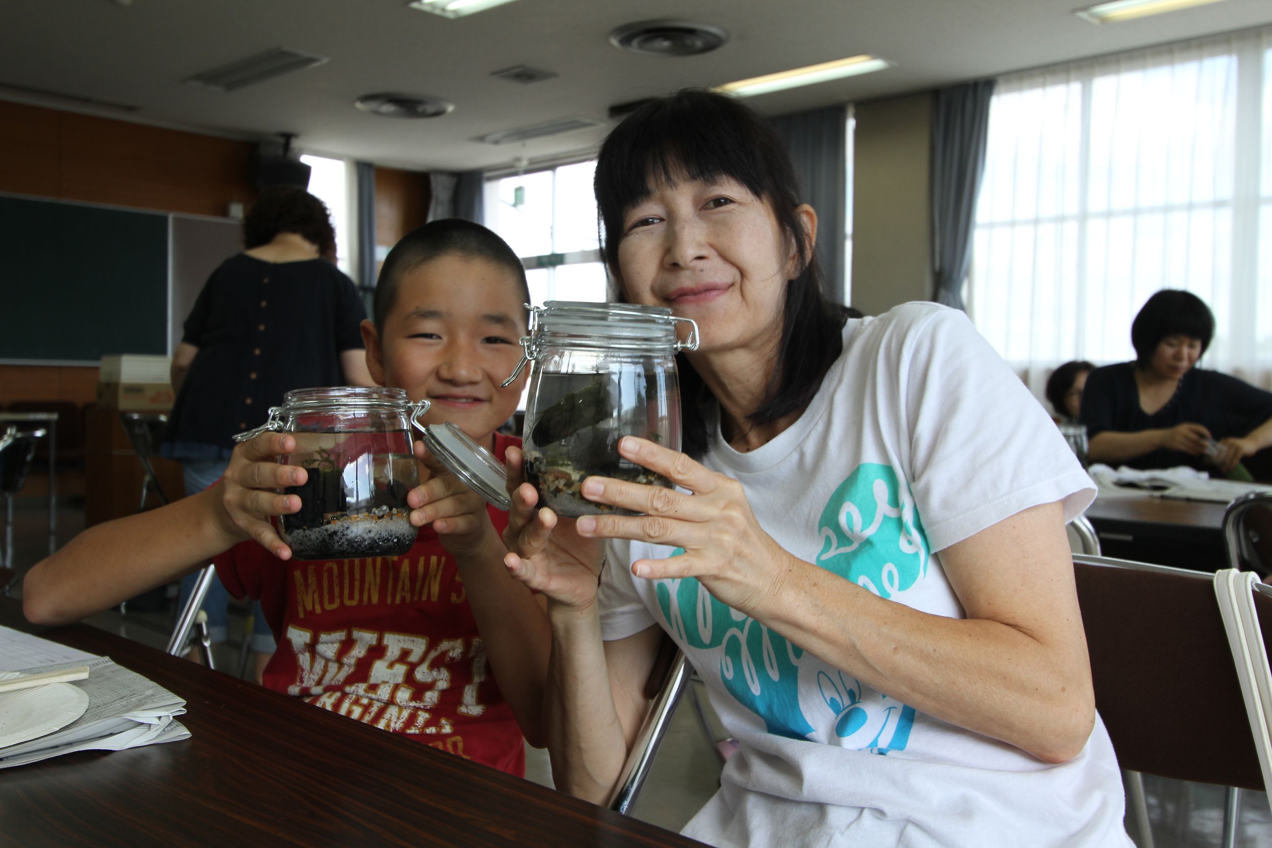 第二部は、ボトルアクアリウムを作りながら、環境の重要性を理解していただきました。