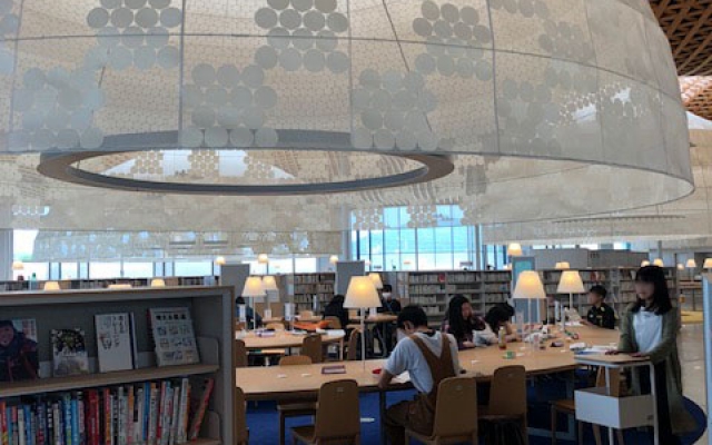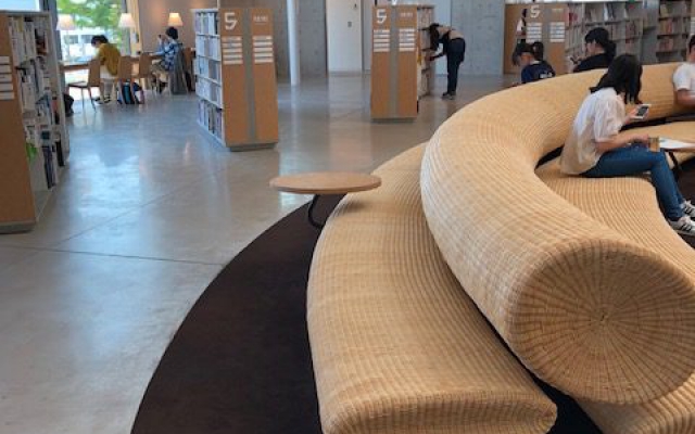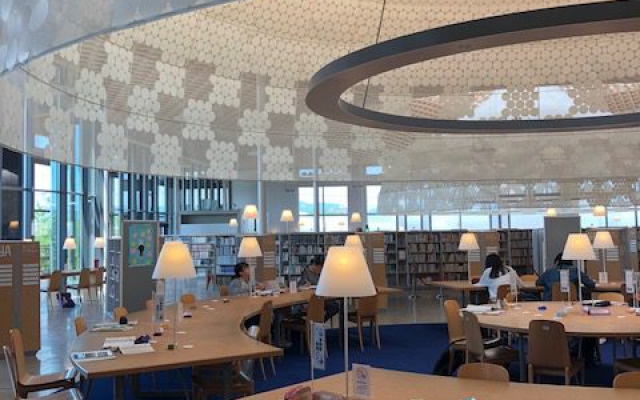 前から気になっていた ”みんなの森 ぎふメディアコスモス”へ ネタ探しに! ここは図書館などのある複合施設ですが 2階はゆるやか天井と所どころにある不思議なグローブが特徴的 勉強したり 本を読んだり 集中できそうな そんな安心感を感じる デザインスペース、インテリアです 今日は昼間に来たけど 夜も見てみた~い感じ(´ー`) 本が並んでいる建築コーナーに行ったら この建物の設計者 伊藤氏が渋い顔で見守っていた ^_^;